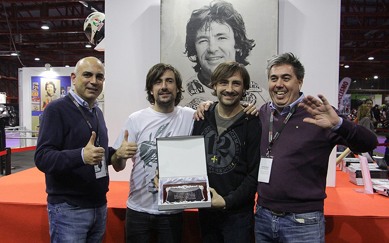 Nos acompañaron Gelete y Pablo Nieto, quienes, además de participar en un acto público sobre la Fundación en el que recordaron a su padre, estuvieron al pie del cañón en un stand que acogía una interesante exposición de objetos deportivos del campeón: 8 motos, los 12+1 diplomas de los Campeonatos del Mundo, tres monos, dos cascos y hasta una veintena de sus trofeos.