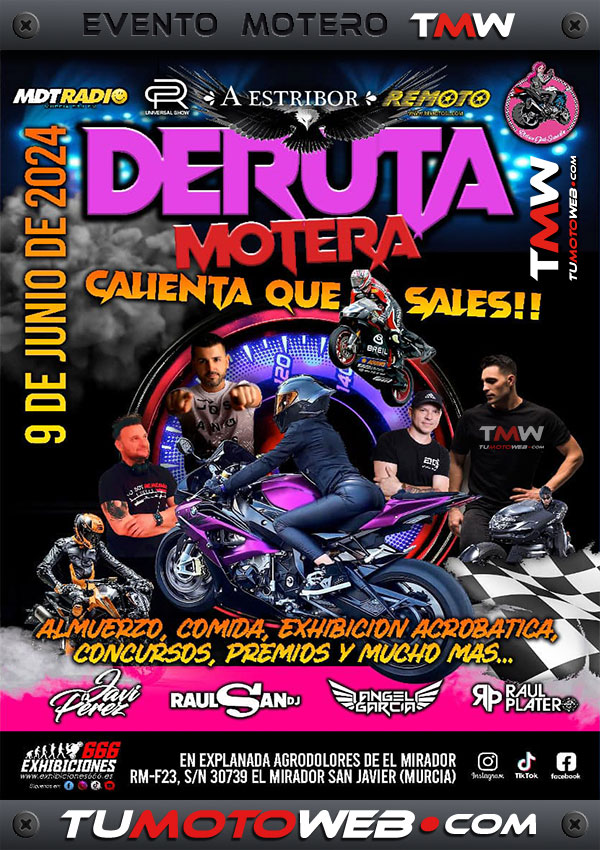 El domingo 9 de junio a partir de las 9:00h de la mañana, Rider Girl Sureste y R&C Universal Show organizan De Ruta Motera Calienta Que Sales 2024 en El Mirador (San Javier – Murcia).
