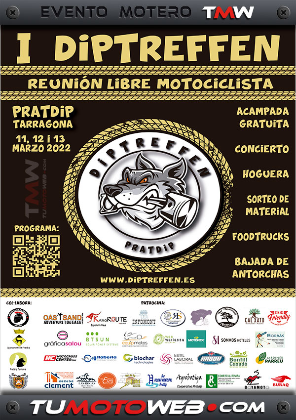 Os esperamos con muchas ganas e ilusión en la primera edición de la Diptreffen Pratdip (Tarragona), una reunión libre motociclista alrededor de la hoguera con acampada gratuita, foodtrucks, stands, show burlesque, concierto en directo, música zona de acampada, bajada de antorchas, rutas, vermutada, almuerzo, juegos, sorteos y mucho más. Que no te lo cuenten..!!