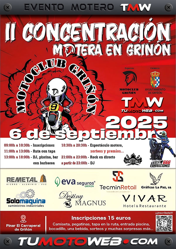 El sábado 6 de septiembre 2025, el MotoClub Griñón organiza su II Concentración Motera en Griñón (Madrid).