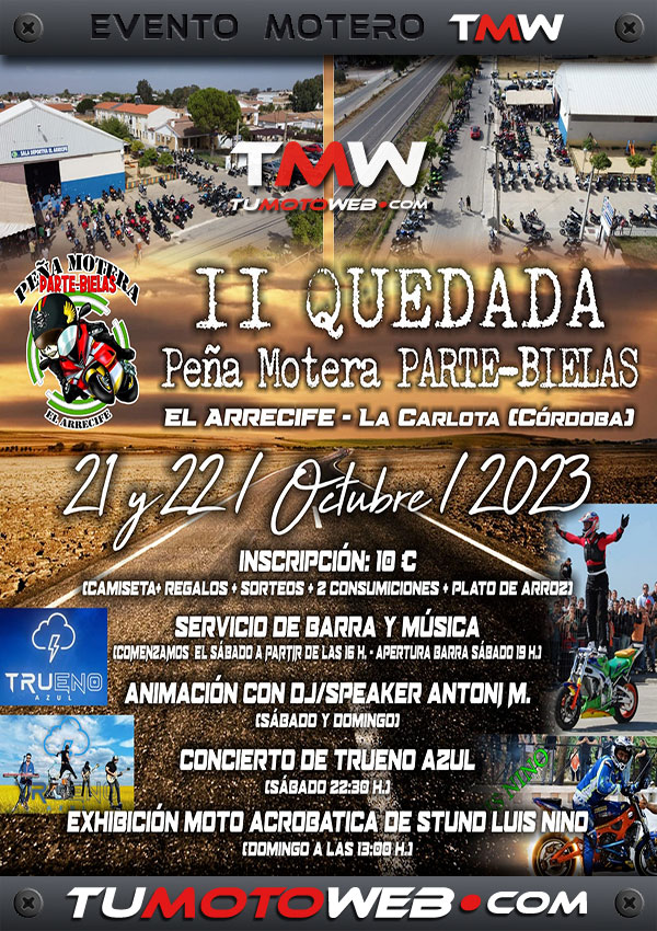 El sábado 21 y domingo 22 de octubre, la Peña Motera Parte-Bielas organiza su II Quedada Motera, en El Arrecife – La Carlota (Córdoba).