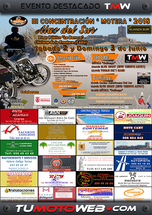 Toda la información sobre la III Concentración Motera Alas del Sur 2018, en la web oficial www.alasdelsur.org.