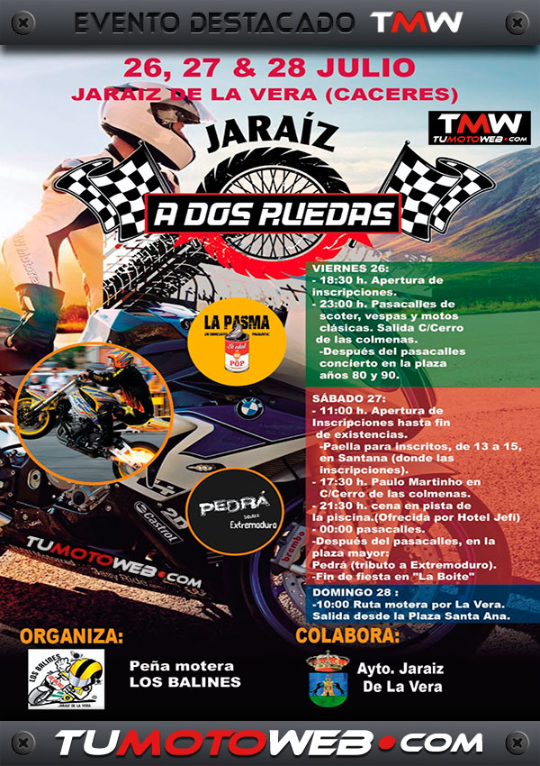 Domingo 29 de Julio: 10:00h Ruta motera por La Vera (salida desde Plaza Santa Ana). Os esperamos a todos en Jaraíz de la Vera. Que no te lo cuenten..!!