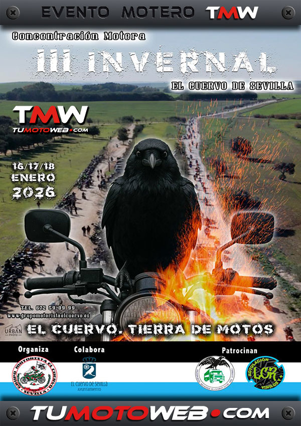 Desde el viernes 16 al domingo 18 de enero 2026, el Grupo Motorista El Cuervo organiza su III Concentración Motorista Invernal en El Cuervo (Sevilla).