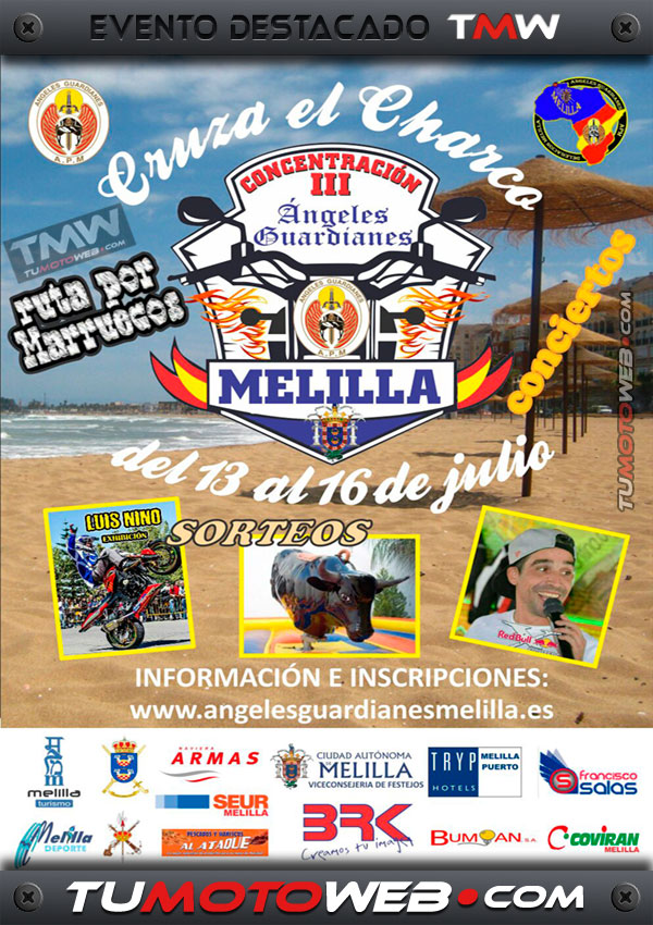 Viernes 14 de Julio: 7:30h: Desayuno en el hotel. 8:30h: Salida a Marruecos. 14:00h: Comida moruna con espectáculo de músicos y bailarinas. 17:00h: Entrada a Melilla. 19:00h Exhibición acrobática Stunt a cargo del piloto Luis Nino y del speaker Antoni M. 22:00h: Cena en la carpa de la Concentración. 23:30h: Concierto y fiesta en el recinto de la Concentración con la actuación del speaker Antoni M.