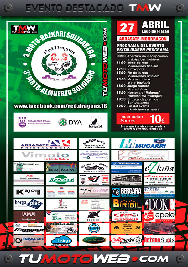 III Motoalmuerzo Solidario Red Dragons 2019 Abril Arrasate Mondragón Guipúzcoa Pais Vasco España Red Dragons
