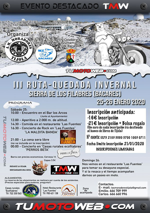 III Quedada Motera Invernal Sierra de Los Filabres (Bacares) 2020 Enero Bacares Almería Andalucia España A.M. Moradores Tíjola