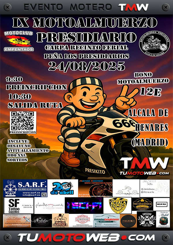 El domingo 24 de agosto 2025, la Peña Los Presidiarios organiza junto al MotoClub Empentaos el IX Motoalmuerzo Presidiario en Alcalá de Henares (Madrid).