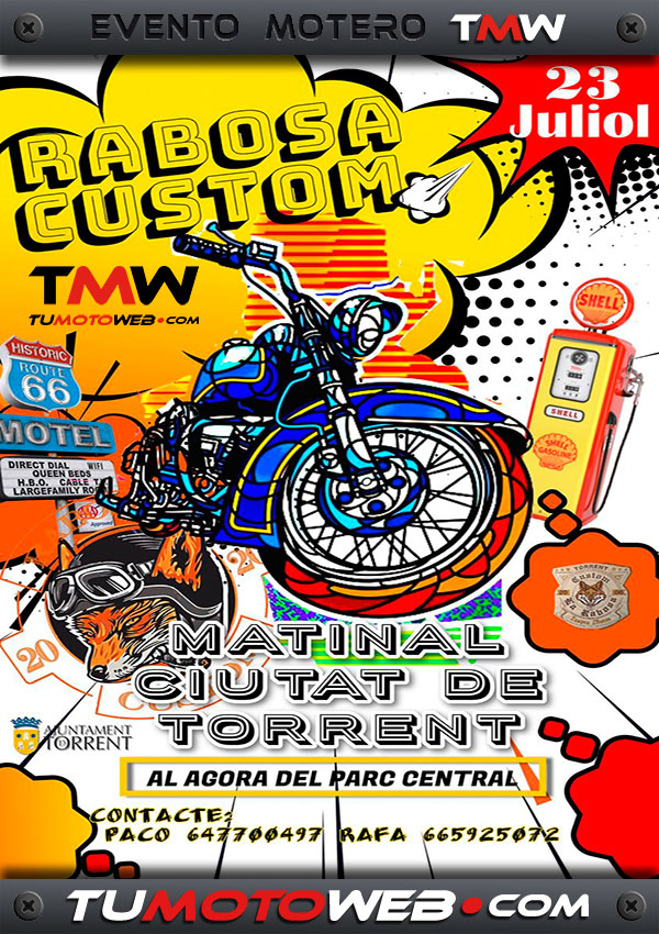 El domingo 23 de julio, el Grupo Custom La Rabosa organiza la Matinal Motera Ciudad de Torrent 2023.