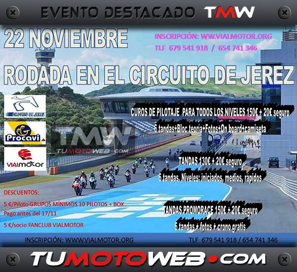 Tú última rodada de la temporada en el circuito de Jerez con Vialmotor el próximo domingo 22 de Noviembre 2015. Diversión asegurada en nuestra pista del mundial.
