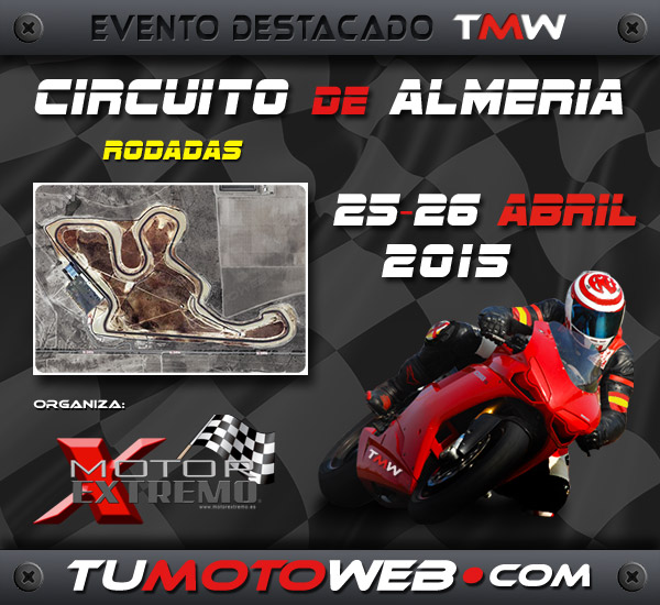 ¿No sabes que hacer este fin de semana? Te damos una idea: Ven al Circuito de Almería, tendrás el mejor ambiente. Niveles: Iniciado, Medio, Avanzado. 3 Grupos con un máximo de 30 motos en cada uno. Cada grupo rueda 6 tandas, 3 de 30 minutos y 3 de 20 minutos. Horario: 08.30 h. Apertura formalización de las inscripciones. 09.45 h. Briefing sobre las normas de seguridad. 10:00 h. Apertura de la pista. Horario de 10 a 14.30 h. y de 15 a 18 h.