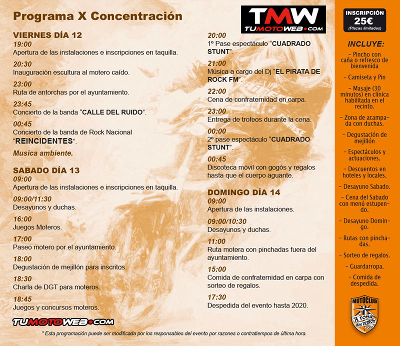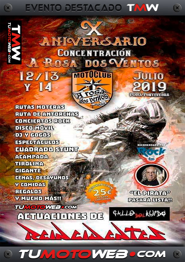 IMPORTANTE: Ahora puedes reservar online tu inscripción de la X Concentración Motera A Rosa Dos Ventos 2019, rellenando la correspondiente Hoja de Inscripción.