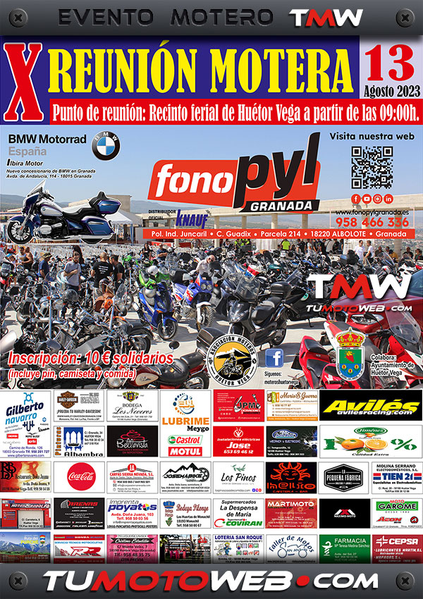 El domingo 13 de agosto a partir de las 9:00h de la mañana, la Asociación Moteros Huétor Vega celebra el X Aniversario de su tradicional Reunión Motera. Colabora el Ayuntamiento de Huétor Vega.