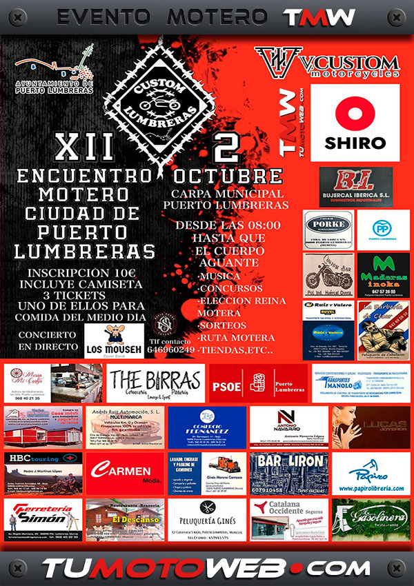 Con muchas ganas os esperamos a tod@s en Puerto Lumbreras (Murcia), para disfrutar una buena jornada motera. Que no te lo cuenten..!!