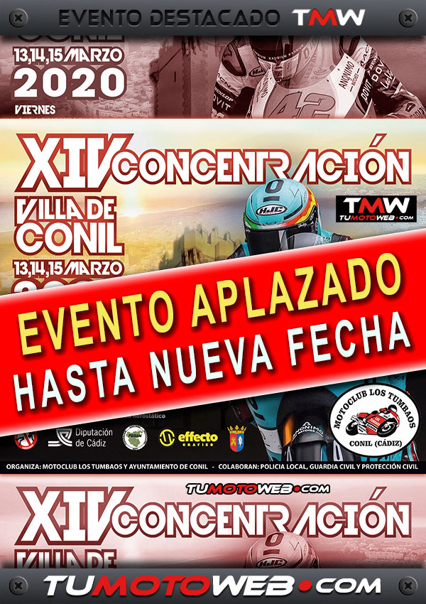 El MotoClub Los Tumbaos ha comunicado a Tumotoweb.com que tras una reunión celebrada en el día de hoy con todos sus socios debido al problema actual del Coronavirus, han tomado la decisión de APLAZAR HASTA NUEVA FECHA la XIV Concentración Motera Villa de Conil 2020, prevista celebrarse del Viernes 13 al Domingo 15 de Marzo 2020 en el Recinto de Ocio Los Bateles en Conil de la Frontera (Cádiz).