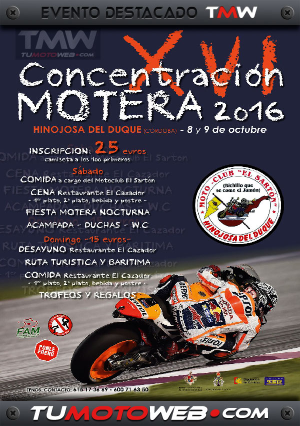 El MotoClub El Sartón (bichillo que se come el jamón) os espera este año con mucha ilusión en Hinojosa del Duque. En esta ocasión pasamos del calor del mes de Julio, a la buena temperatura del mes de Octubre. Te lo vas a perder..?