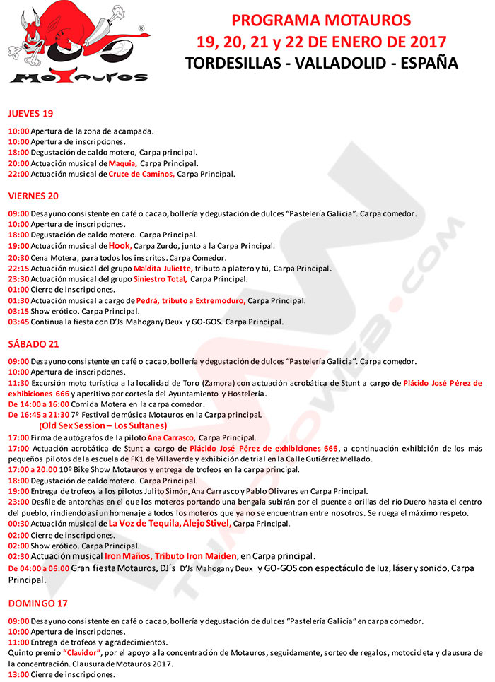 XVII Concentración Motorista Internacional de Invierno Motauros 2017 Enero Tordesillas Valladolid Castilla Leon España MotoClub Tordesillas