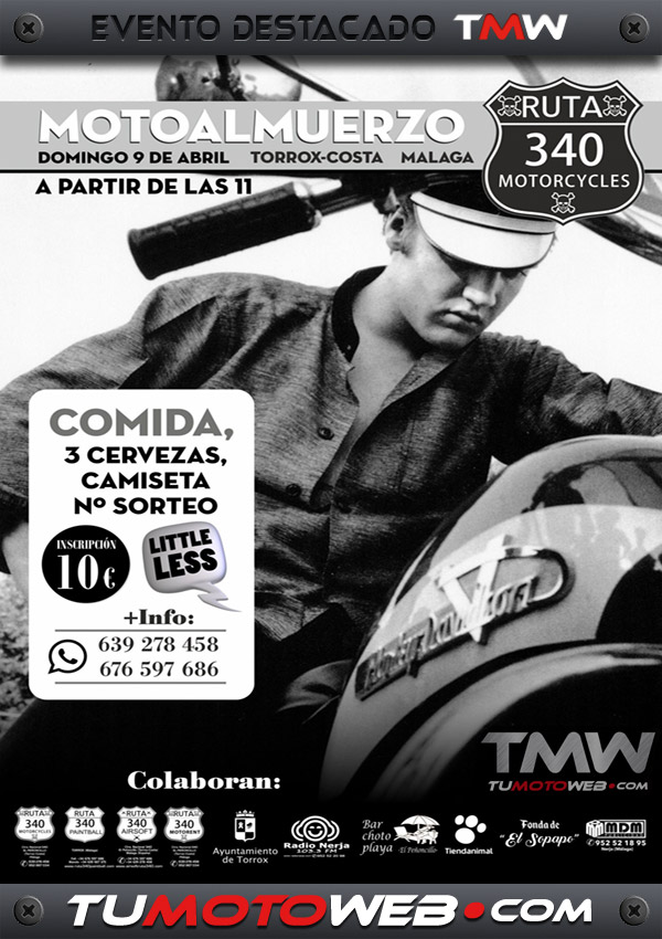 Si aún no conoces los Motoalmuerzos Ruta 340 Motorcycles que organizan nuestros amigos Nancy y Faly de Ruta 340 Motorcycles, desde hace una década en la localidad de Torrox-Costa (Málaga), puedes echar un vistazo al especial fotográfico realizado por Tumotoweb.com en dicho evento motero.