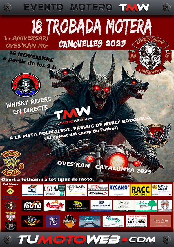 El domingo 16 de noviembre 2025 a partir de las 9:00h de la mañana, Oves’Kan MG Catalunya organiza la XVIII Trobada Motera en Canovelles (Barcelona).