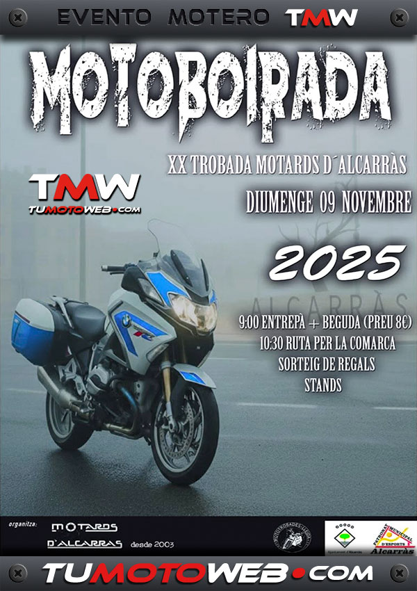 El domingo 9 de noviembre 2025 a partir de las 9:00h de la mañana, Motards d’Alcarràs organiza la XX Trobada Motards MOTOBOIRADA en Alcarràs (Lleida).