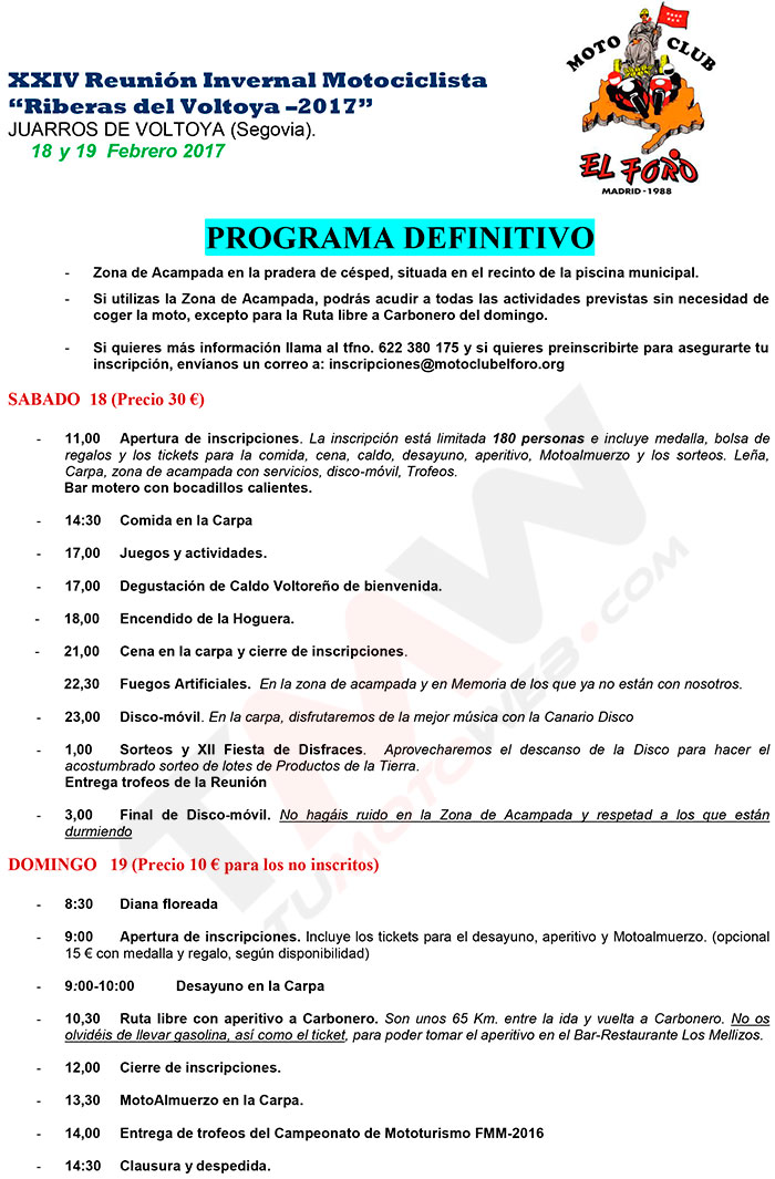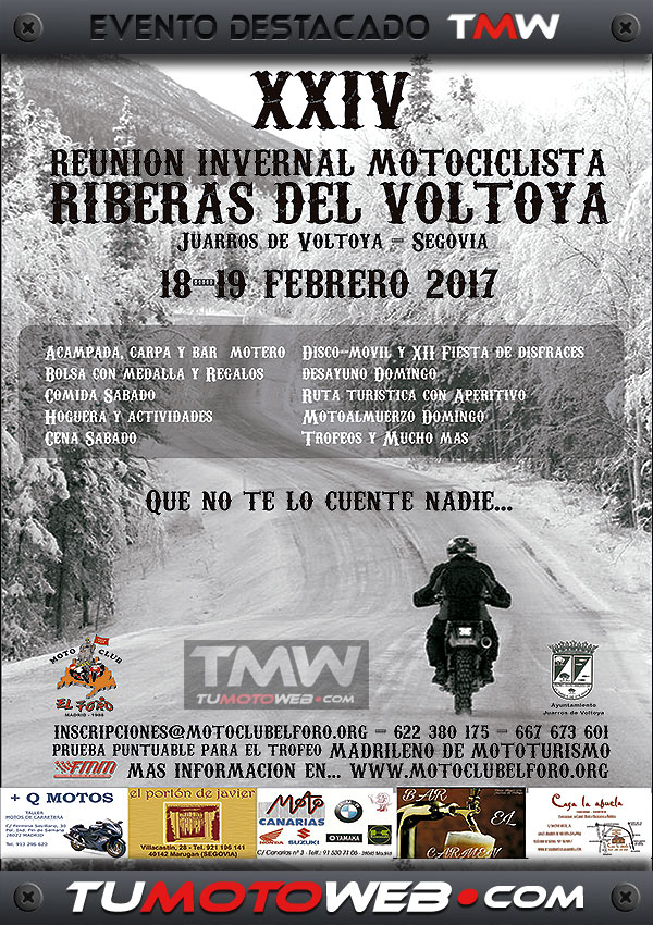 Así que ya lo sabes, si no has estado nunca y quieres conocer una Reunión diferente, ven a la Reunión Invernal Motociclista “Riberas del Voltoya”. Infórmate primero ya que el número de inscritos está limitado.