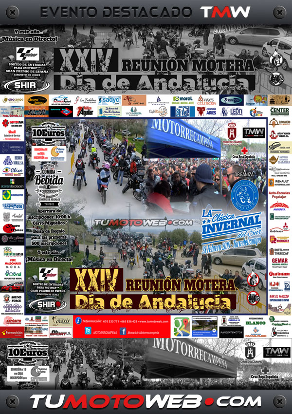 Si aún no conoces la Reunión Motera Día de Andalucía que organizan nuestros amigos del MotoClub Motorrecampeña, desde hace más de 20 años en la localidad de Torredelcampo (Jaén), puedes echar un vistazo al especial fotográfico realizado por Tumotoweb.com en dicho evento motero.