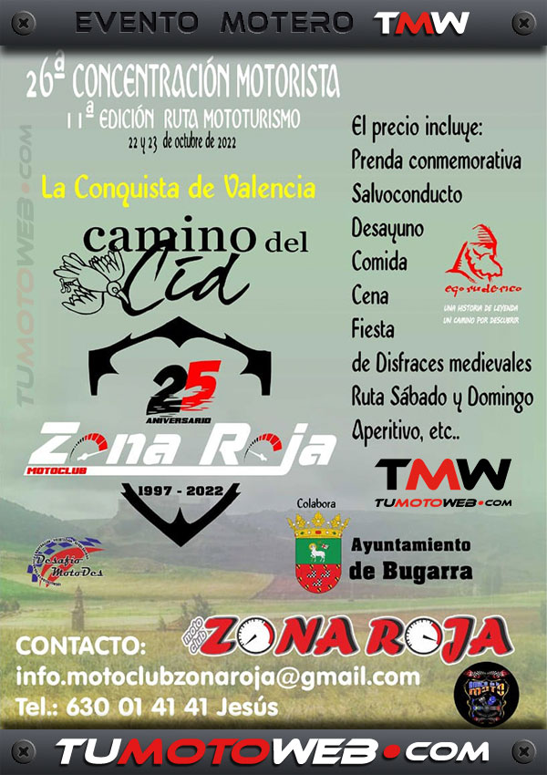 XXVI Concentración Motorista XI Ruta Mototurismo Camino del Cid 2022 Octubre Valencia Comunidad Valenciana España MotoClub Zona Roja