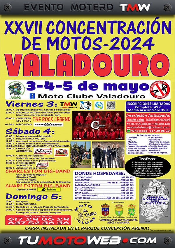 Desde el viernes 3 al domingo 5 de mayo, el MotoClube Valadouro organiza su XXVII Concentración de Motos en O Valadouro (Lugo).