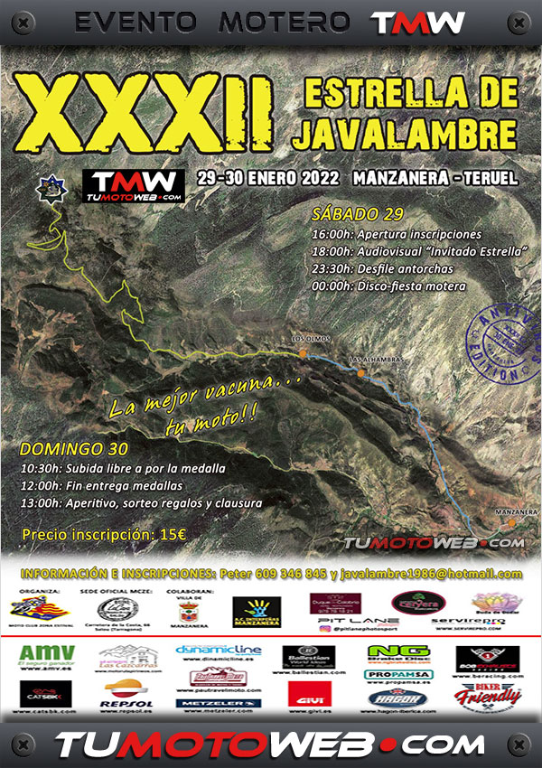 Domingo 30 de Enero: 10:30h Subida libre a por la medalla Estrella de Javalambre. 12:00h Fin entrega de medallas. 13:00h Aperitivo, sorteo de regalos y clausura. La mejor vacuna, tu moto..!!