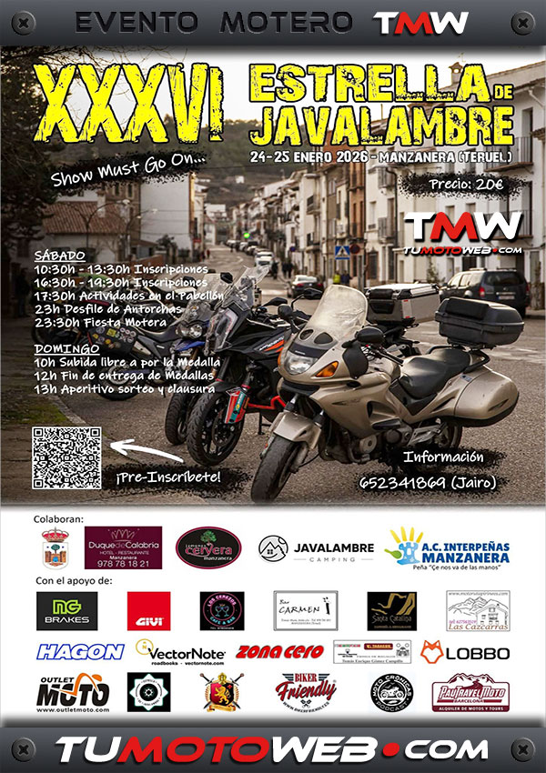 El sábado 24 y domingo 25 de enero 2026, el MotoClub Zona Estival organiza la XXXVI Reunión Libre Estrella de Javalambre en la localidad de Manzanera (Teruel).