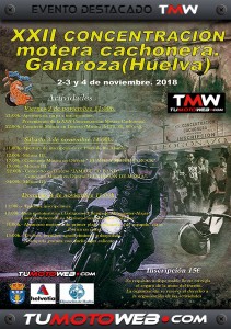 Viernes 2 de Noviembre: 21:00h Apertura de carpa e inscripciones. Zona de acampada gratuita con ducha de agua caliente. Presentación de la XXII Concentración Motera Cachonera 2018. 22:00h Concierto en directo a cargo de Jamacuco Band (Música de los 70, 80 y 90)...