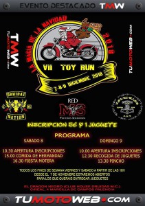 Sábado 8 de Diciembre: A partir de las 10:30h apertura de inscripciones. 15:00h Comida de hermandad. 16:30h Fiesta motera. Domingo 9 de Diciembre: A partir de las 10:00h apertura de inscripciones. 12:30h Recogida de juguetes. 13:30h Pincho. No olvides traer tu juguete...