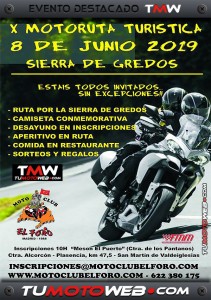 Sábado 8 de Junio: 10:00h Apertura de inscripciones (20 €), camiseta conmemorativa, desayuno, salida ruta mototurística por la Sierra de Gredos (aperitivo incluido), fin de la ruta, comida en Restaurante, sorteo de regalos... Más Información »