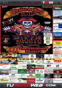 Viernes 16, Sábado 17 y Domingo 18 de Agosto: XII Concentración Motera Piratas de Adra 2019. Apertura de inscripciones, bolsa regalo, zona de acampada, ruta barítima, juegos moteros, conciertos en directo, entrega de trofeos, sorteo de regalos y mucho más...