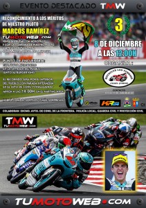 Domingo 8 de Diciembre: 12:00h Quedada motera en la explanada del Mercadillo de Conil de La Frontera (junto al Burguer King). Salida ruta motera por el interior del pueblo acompañando al piloto de Moto3 Marcos Ramírez, que asistirá con su moto oficial. Parada en el Ayuntamiento y finalizaremos la ruta en el circuito de Karting KR24. 14:00h Degustación de menudo para los asistentes (gratuita), sorteos y más sorpresas... Más Información »