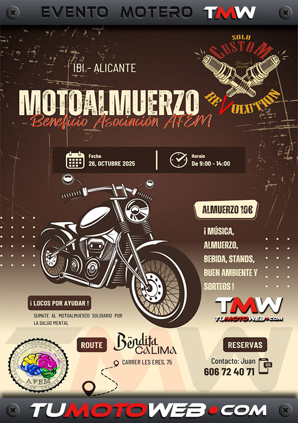 El domingo 26 de octubre 2025, Solo Custom Revolution organiza el Motoalmuerzo Solidario Villa del Juguete en dicha Ibi (Alicante)... Más Información »
