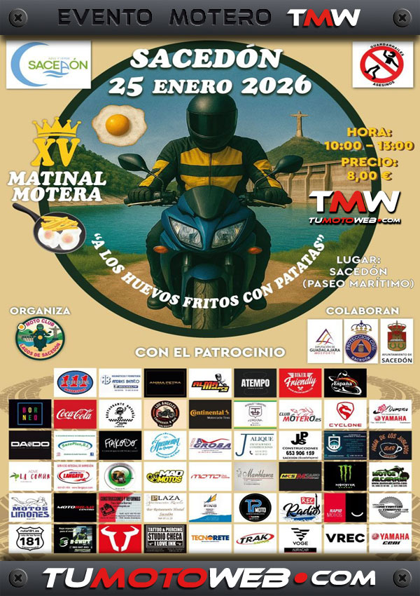 El domingo 25 de enero 2026 a partir de las 10:00h de la mañana, el MotoClub Lagos de Sacedón organiza la XV Matinal Motera A Los Huevos Fritos Con Patatas en Sacedón (Guadalajara)... Más Información »