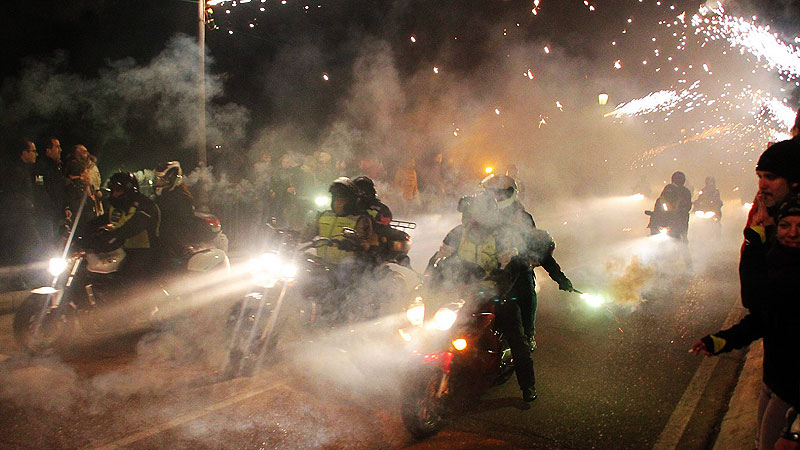 Tampoco la lluvia quiso perderse el desfile de antorchas, pero este se realizó igualmente, puesto que el fin era rendir homenaje a los moteros fallecidos, y con paraguas, chubasquero, o capucha, aficionados a los motos y visitantes, cumplieron con ese reconocimiento.